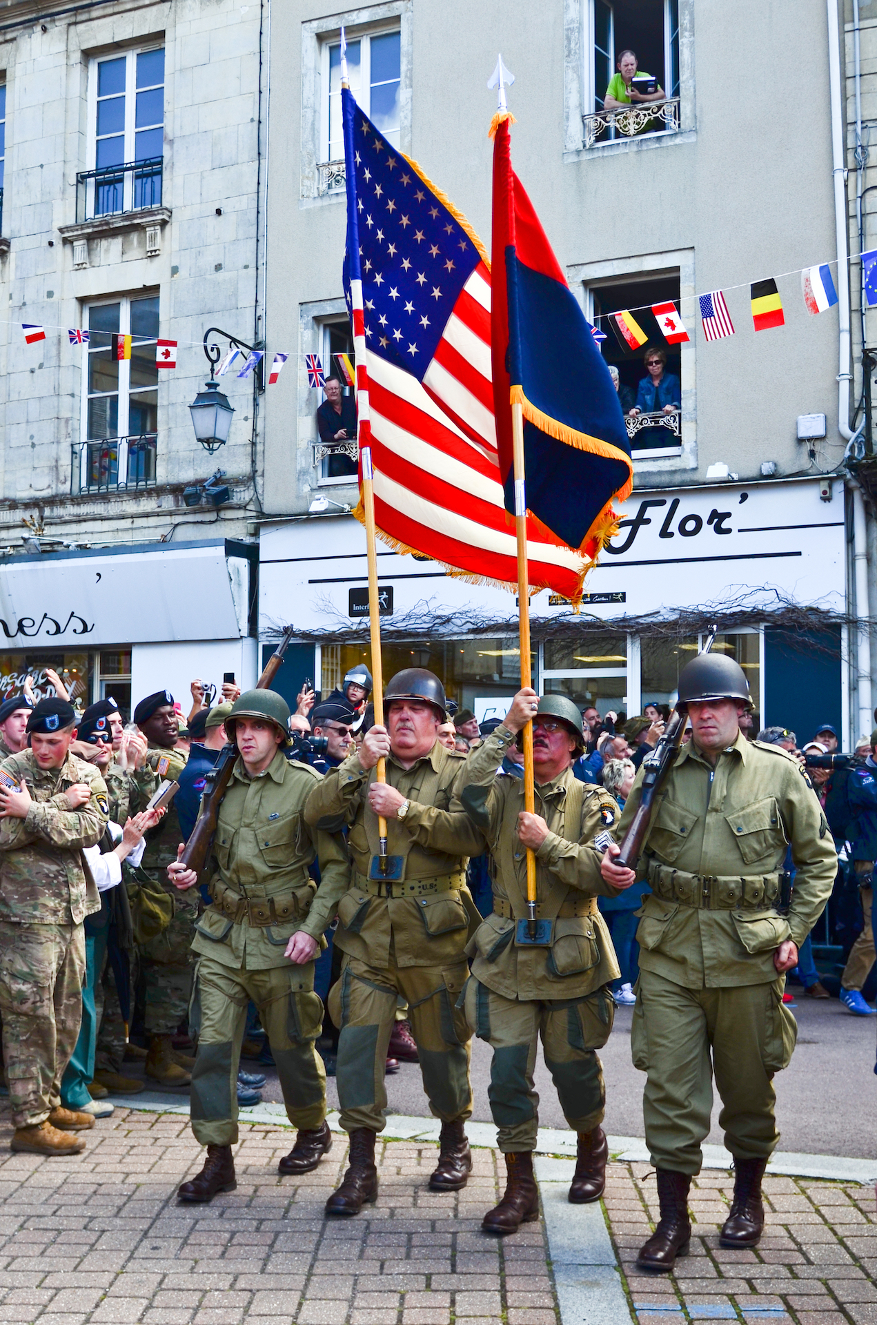 In honor of the paratroopers of the 101st Airborne Division and the WWII veterans present for the 75th D-Day anniversary civilians dressed in 1940 period clothing and uniforms marched through the town of Carentan, France, June 8. More than 1,300 U.S. Service Members, partnered with 950 troops from across Europe and Canada, have converged in northwestern France to commemorate the 75th anniversary of Operation Overlord, the WWII allied Invasion of Normandy, commonly known as D-Day. Upwards of 80 ceremonies in 40 French communities in the region are scheduled to take place between June 1-9, 2019.