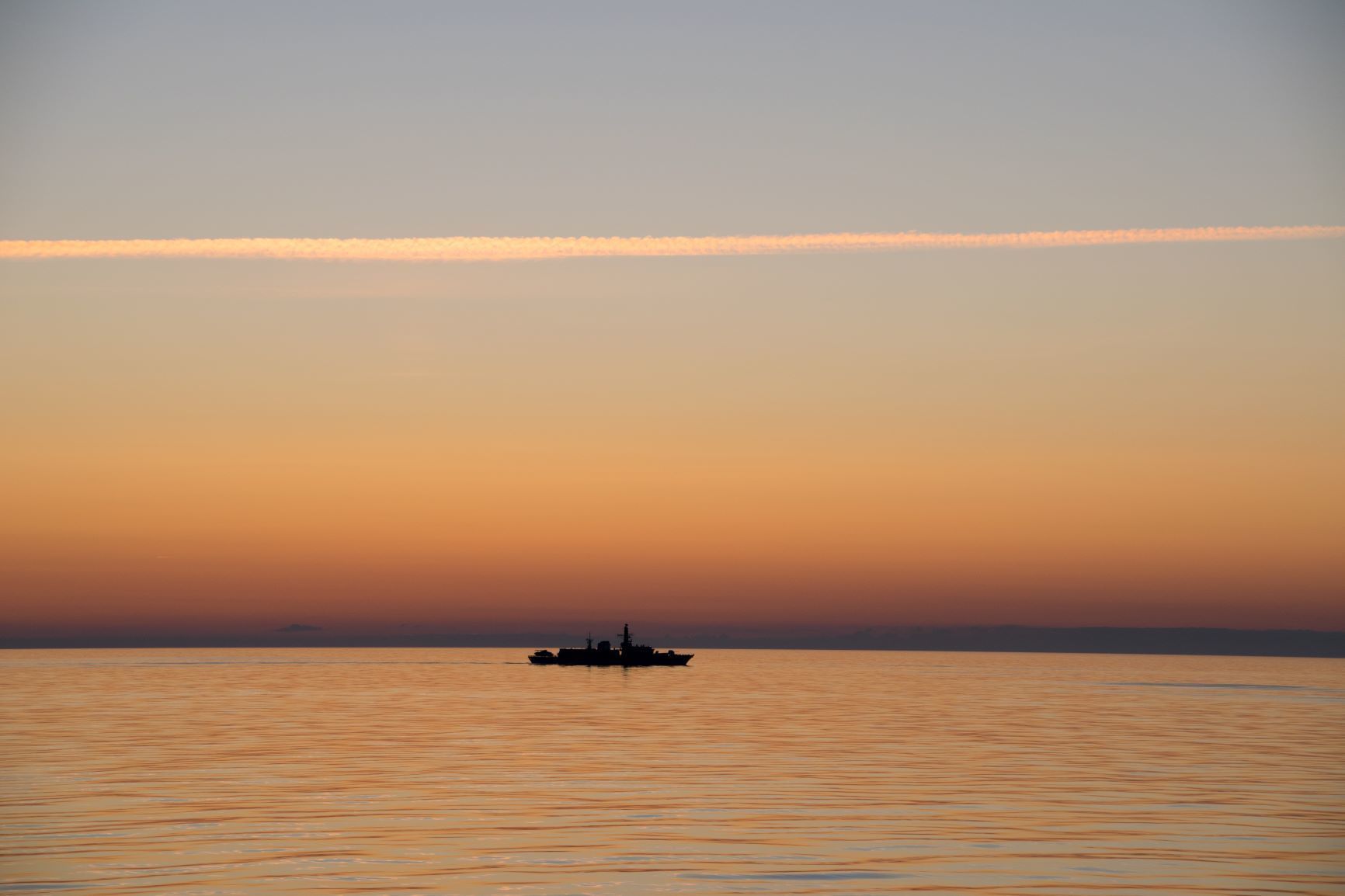 BALTIC SEA (June 10, 2020) Royal Danish Navy HDMS Esbern Snare (L17) observes sunset during BALTOPS 2020, June 10. BALTOPS is the premier annual maritime-focused exercise in the Baltic region, enhancing flexibility and interoperability among allied and partner nations. (Photo courtesy of the Danish Task Group)