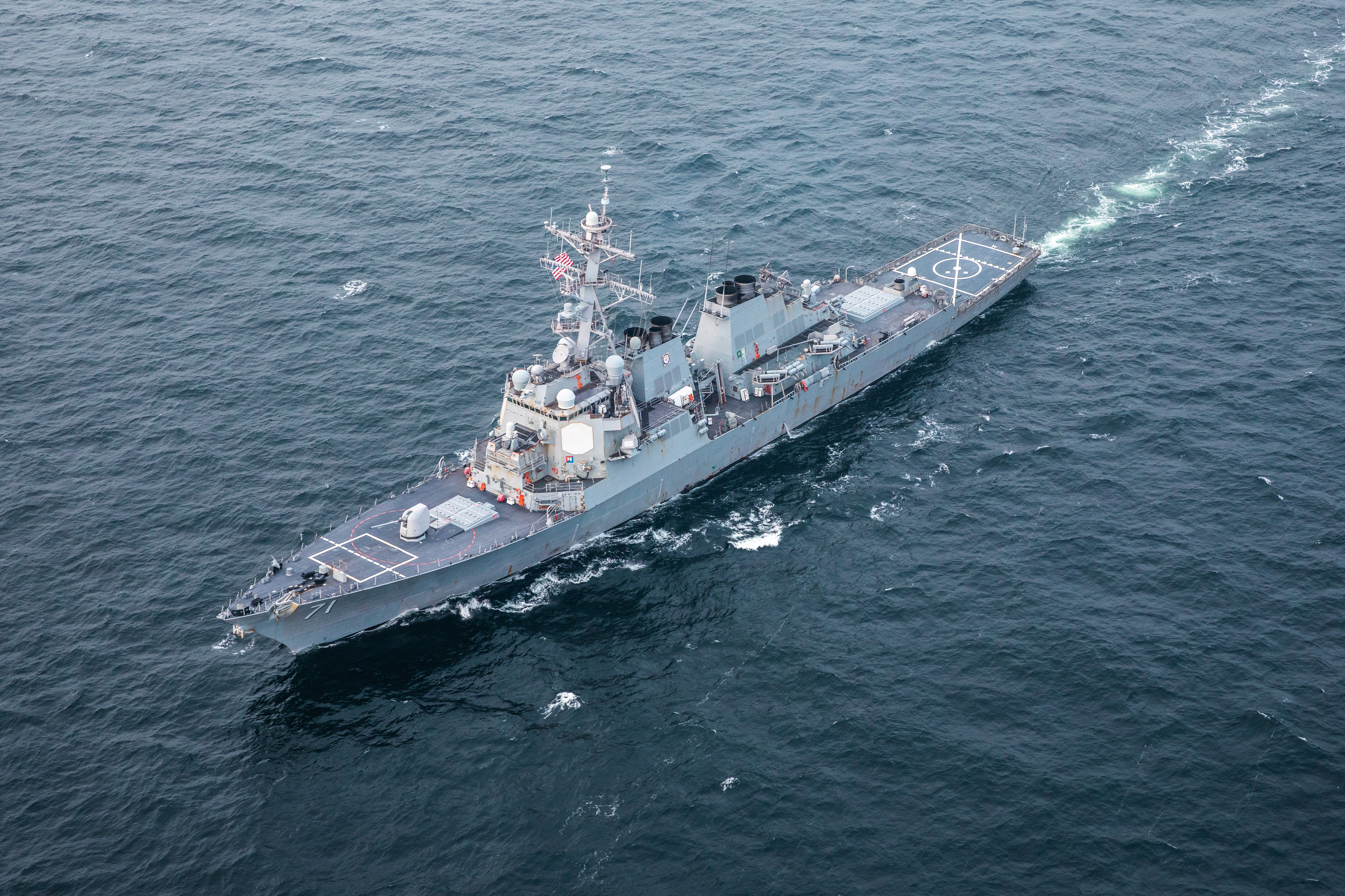 The USS Ross, an Arleigh Burke-class guided-missile destroyer, conducts anti-surface and anti-submarine warfare near the Swedish coastline during a Swedish-led bilateral exercise, November 15, 2020. The exercise occurred in land, air and maritime regions to test combined military options, rapid response capabilities, and readiness to support Swedish defense and the Baltic Sea Region. (U.S Army photo by Sgt. Patrik Orcutt)