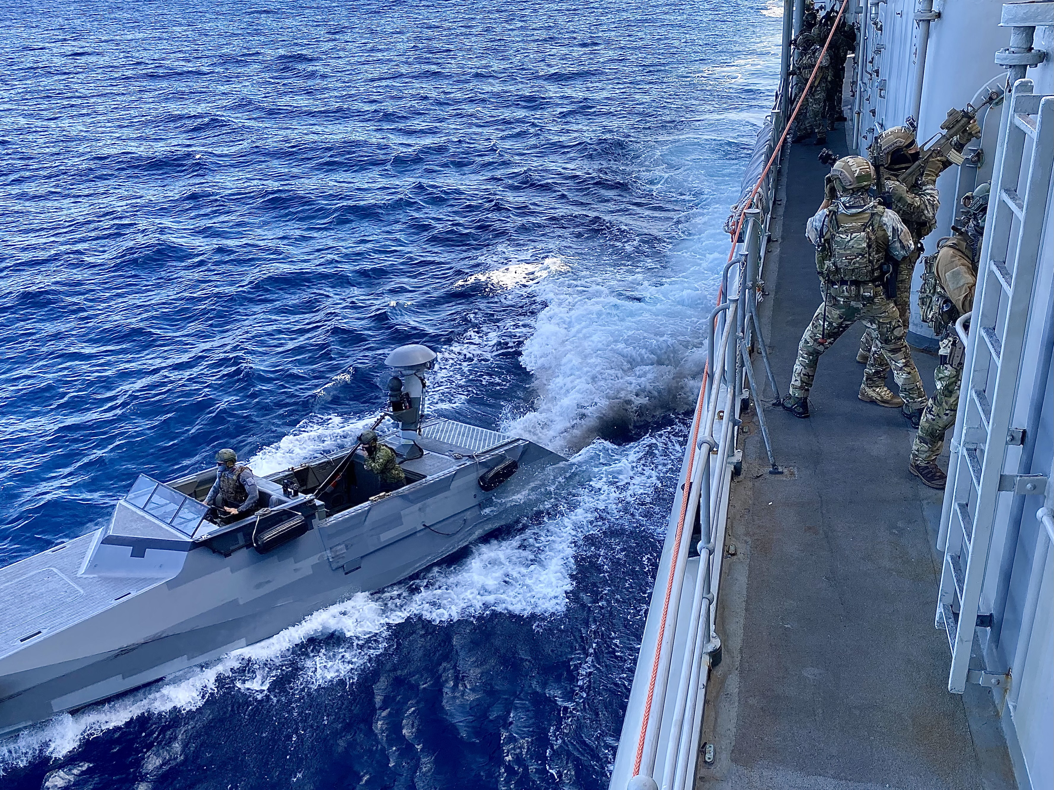 Naval special operations forces from the Greek Underwater Demolition Team (DYK), Cypriot Underwater Demolition Team (UDT), and U.S. Navy Special Warfare Combatant-Craft Crewmen (SWCC) conduct Visit Board Search and Seizure (VBSS) training in Souda Bay, Greece, during a trilateral exercise, January 11-29. This trilateral maritime exercise strengthened cooperation and combined capabilities between Greece, Cyprus, and the United States in the European theater to better enable global operations.