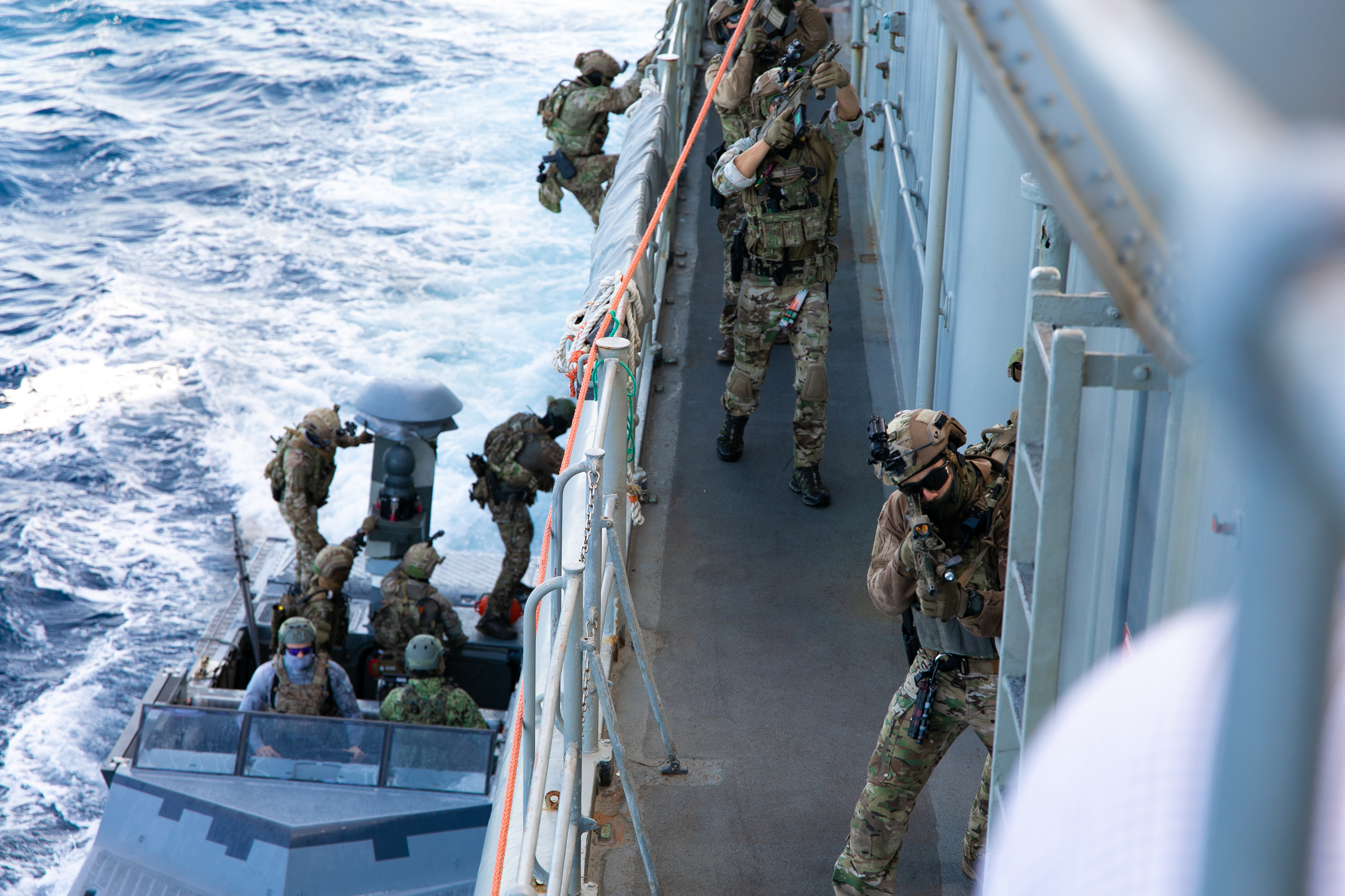 Naval special operations forces from the Greek Underwater Demolition Team (DYK), Cypriot Underwater Demolition Team (UDT), and U.S. Navy Special Warfare Combatant-Craft Crewmen (SWCC) conduct Visit Board Search and Seizure (VBSS) in Souda Bay, Greece, during a trilateral exercise, January 11-29. This trilateral maritime exercise strengthened cooperation and combined capabilities between Greece, Cyprus, and the United States in the European theater to better enable global operations.