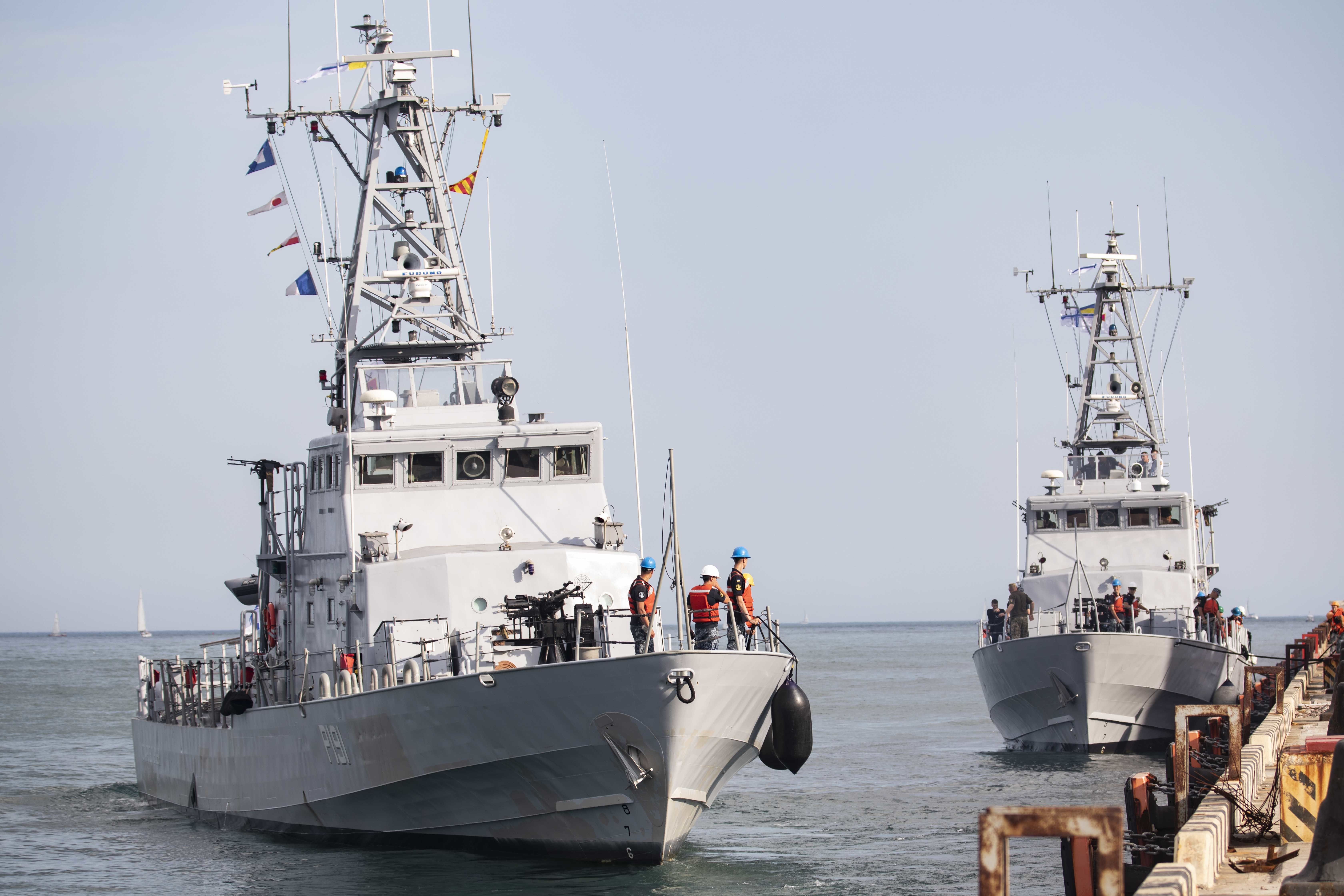 210702-N-BM428-0109 ODESA, Ukraine (July 2, 2021) A pair of Ukrainian navy Island-class patrol boats prepare to depart a pier in Odesa, Ukraine during Exercise Sea Breeze 2021, July 2, 2021. Exercise Sea Breeze is a multinational maritime exercise cohosted by the U.S. Sixth Fleet and the Ukrainian Navy since 1997. Sea Breeze 2021 is designed to enhance interoperability of participating nations and strengthens maritime security and peace in the region. (U.S. Navy photo by Mass Communications Specialist 2nd Class Damon Grosvenor/Released)