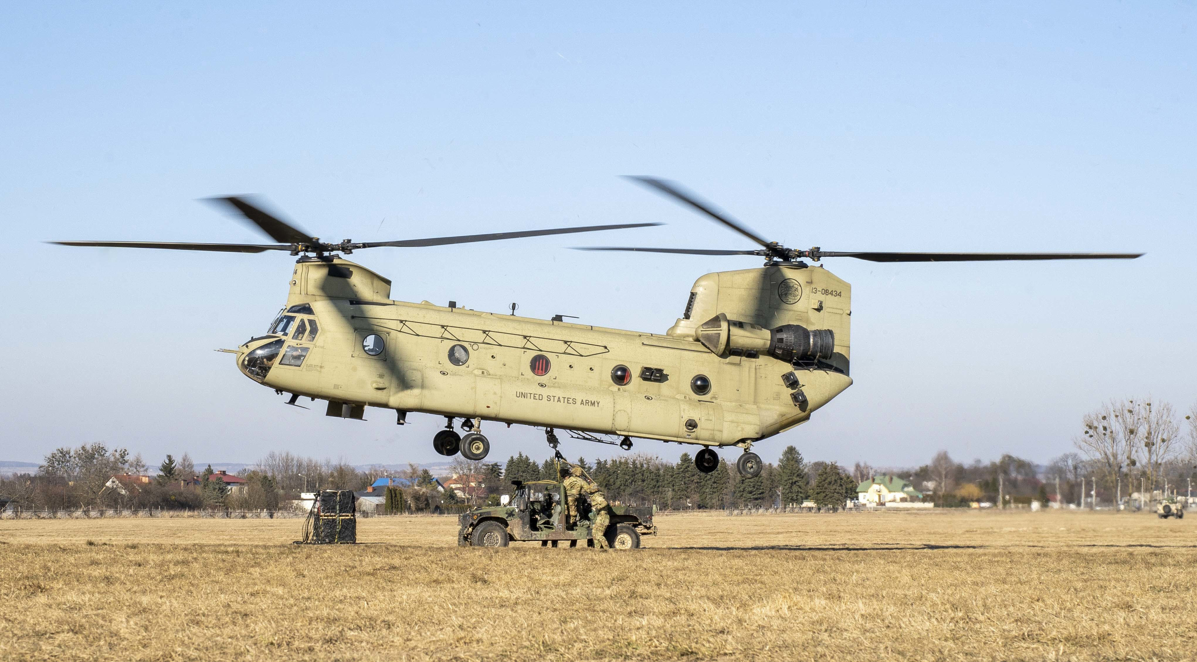 U.S. Paratroopers assigned to 3rd Brigade Combat Team, 82nd Airborne Division conduct sling load training in Zamość, Poland, March 18, 2022. The focus of the 82nd Airborne Division's mission is to assure our Allies by providing a host of unique capabilities and conducting a wide range of missions that are scalable and tailorable to mission requirements. (U.S. Marine Corps photo by Sgt. James Bourgeois)