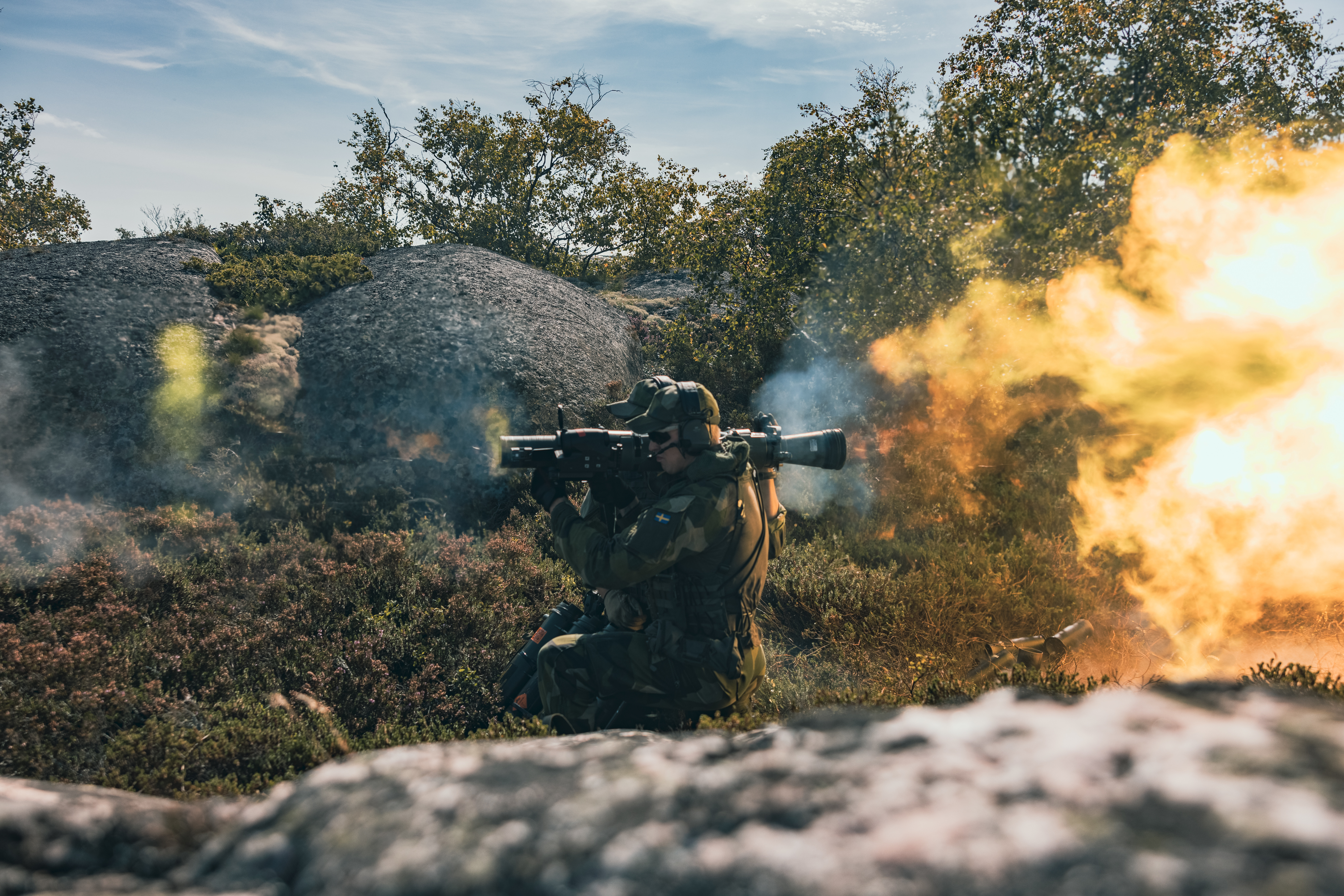 Coastal rangers with the Swedish Marines engage targets with a M3E1 Multi-purpose Anti-armor Anti-personnel Weapon System during a live-fire training evolution during Archipelago Endeavor 23 in Sweden on Sept. 7, 2023. Archipelago Endeavor is an integrated, Swedish Armed Forces-led exercise that increases operational capability and enhances strategic cooperation between the U.S. Marines and Swedish forces.