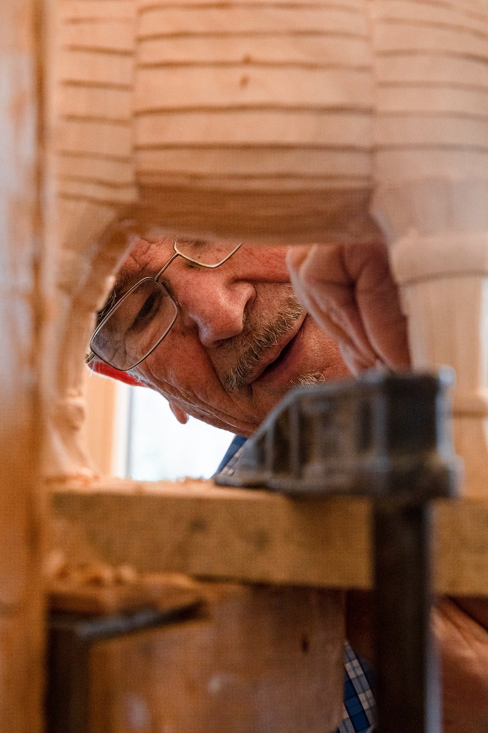 Sebastian Demmel, a German woodworker, adds details to the foot of a Trojan horse sculpture at his workshop in Bad Tölz, Germany, Dec. 1, 2023. These horses are sometimes given out as presents amongst U.S. Special Forces units to celebrate momentous occasions. (U.S. Army photo by Sgt. Alejandro Lucero)