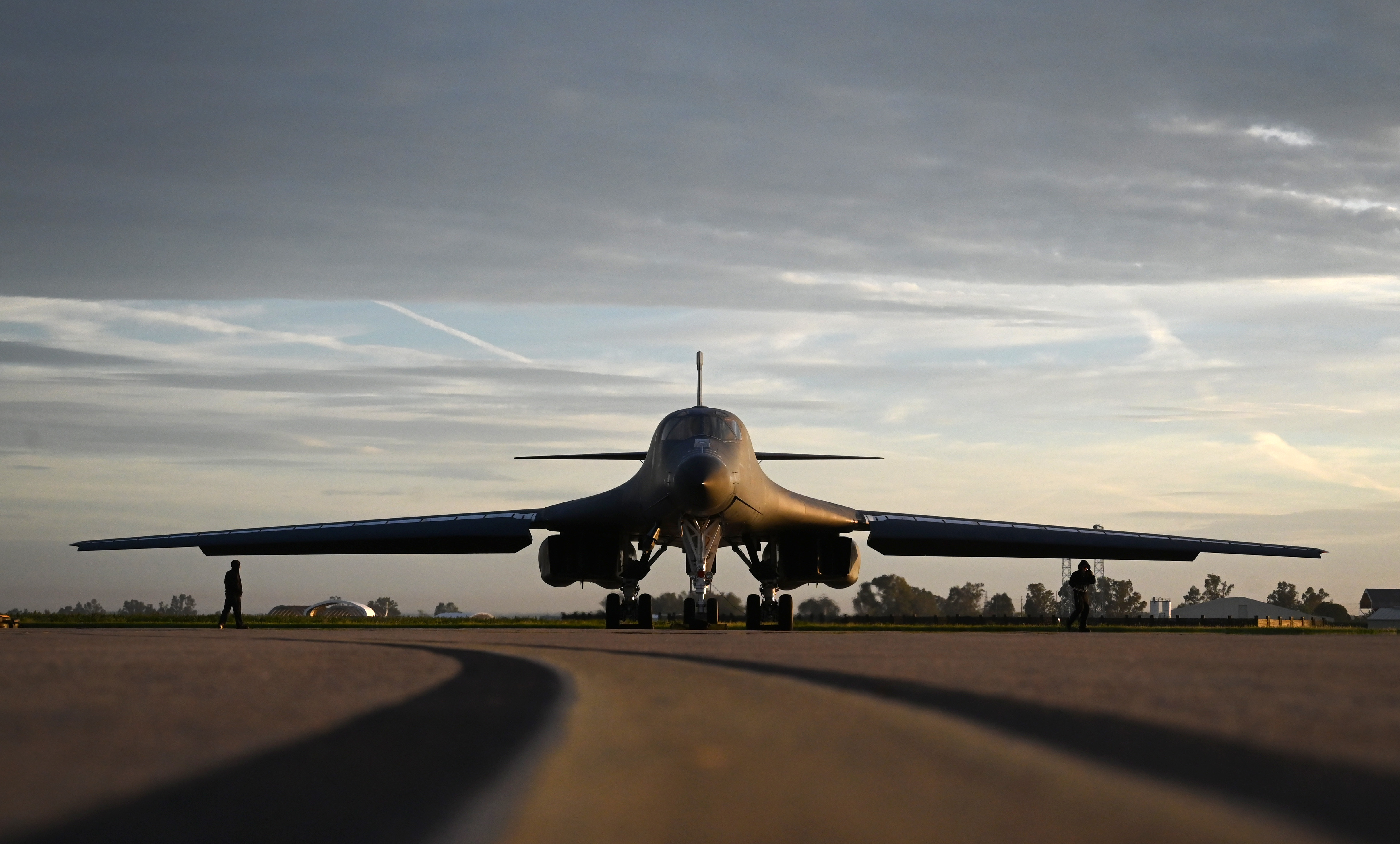 A B-1B Lancer assigned to Dyess Air Force Base, Texas, sits on the flightline during Bomber Task Force 24-2 at Morón Air Base, Spain, April 2, 2024. BTF Europe provides U.S. and NATO leaders with strategic options to assure, deter and defend against adversary aggression against the Alliance, throughout Europe, and across the globe. (U.S. Air Force photo by Staff Sgt. Holly Cook)