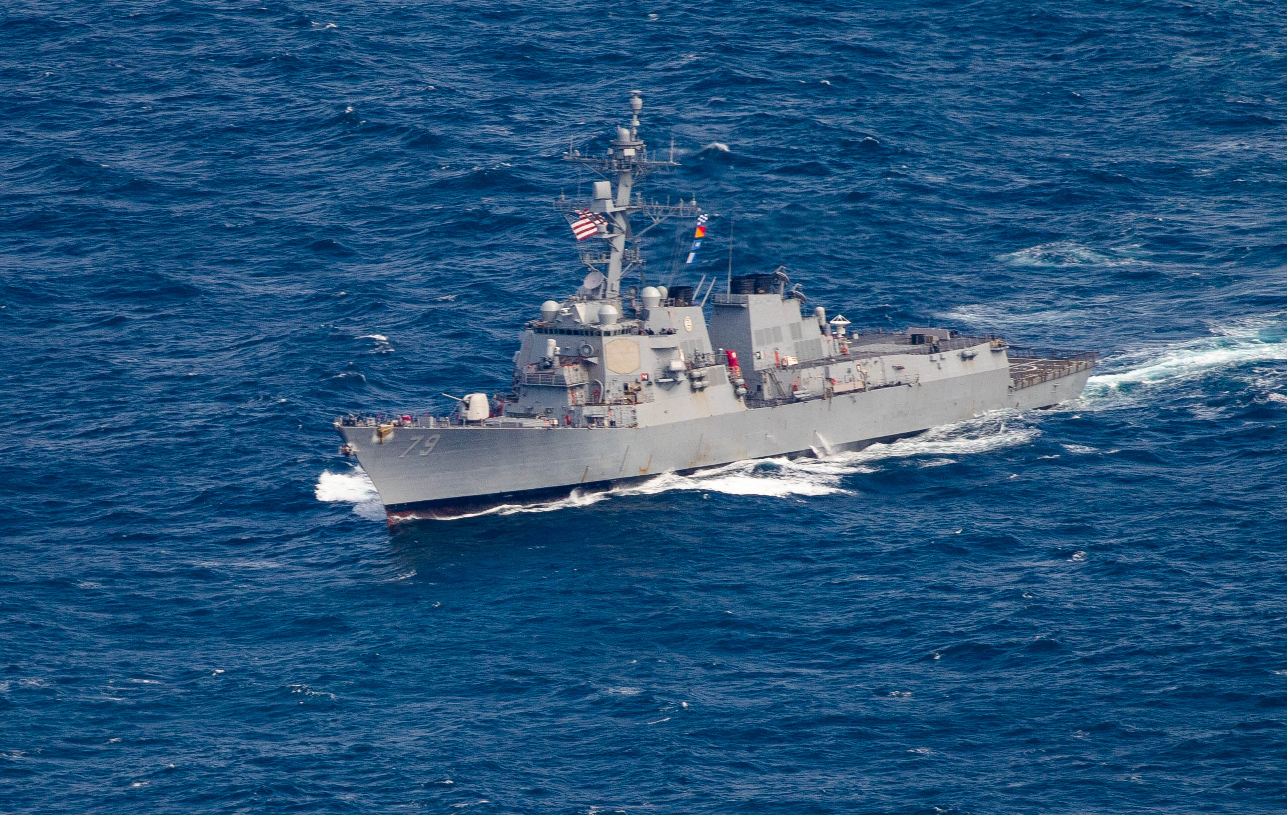 The Arleigh Burke-class guided-missile destroyer USS Oscar Austin (DDG 79) stations during a photo exercise in support of exercise Formidable Shield 2023 while operating in the North Atlantic Ocean on May 15, 2023. On May 8, 2023, the U.S. Ambassador to Spain, Julissa Reynoso, signed in Madrid on behalf of President Biden the enhancement of the Defense Cooperation Agreement with the Kingdom of Spain to increase the U.S. Navy’s presence at Rota Naval Base, Spain, from four Arleigh Burke-class guided-missile destroyers to six.