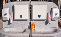 A hand washing station placed inside Pod one at Ramstein Air Base, Germany, Sep. 4, 2021. U.S. Air Force Airmen who provide medical care to evacuees wash their hands regularly to mitigate any potential spread of illness. (U.S. Air Force photo by Airman Jared Lovett)