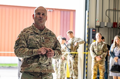 U.S. Army Gen. Christopher Cavoli, Commander, U.S. European Command & Supreme Allied Commander, provides during an unveiling of the new Army warehouse at Aviano Air Base, Italy, on Oct. 9, 2024. The U.S. Army Corps of Engineers-led project supports USEUCOM’s missions by delivering facilities like this one that enhance readiness, increase operational capabilities and help ensure warfighters have the necessary sustainment capabilities for mission success