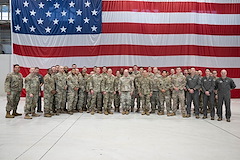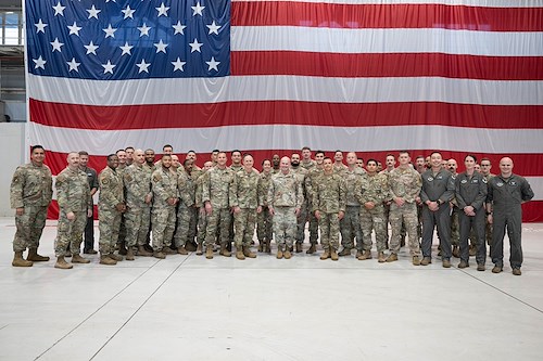 U.S. Army Gen. Christopher Cavoli, Commander, U.S. European Command & Supreme Allied Commander poses for a group photo alongside U.S. Air Force Airmen assigned to the 31st Fighter Wing at Aviano Air Base, Italy, Oct. 9, 2024. Cavoli visited Aviano AB for a ribbon cutting ceremony on a new warehouse designed to support the 173rd Airborne Brigade’s contingency operations and reduce the time needed to rapidly deploy.