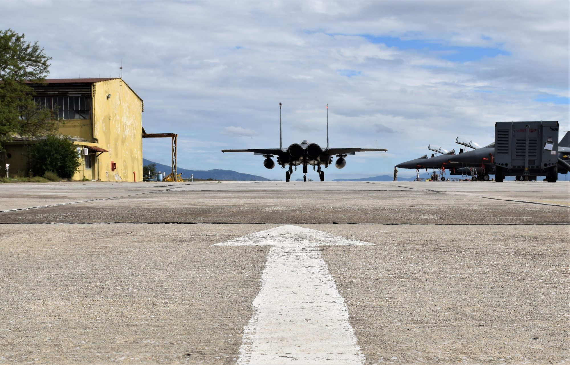 U.S. F-15E Strike Eagle aircraft from the 336th Fighter Squadron, 4th Fighter Wing, Seymour Johnson Air Force Base, N.C., wrap up operations in Greece after the completion of Castle Forge. The Agile Combat Employment exercise is a U.S. Air Forces Europe-Air Forces Africa-led joint, multinational training event that took place from October 10 - November 15 2021.
